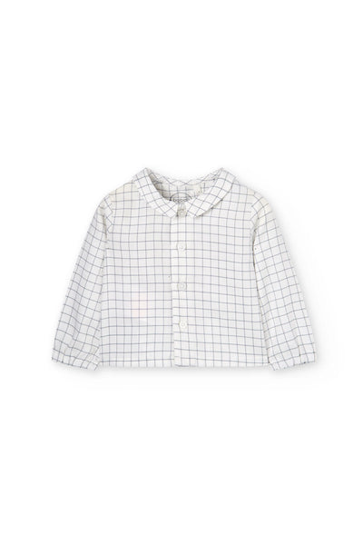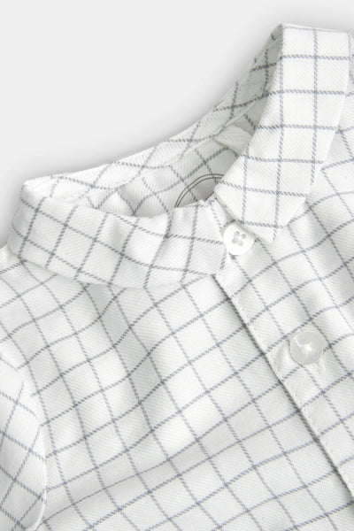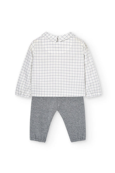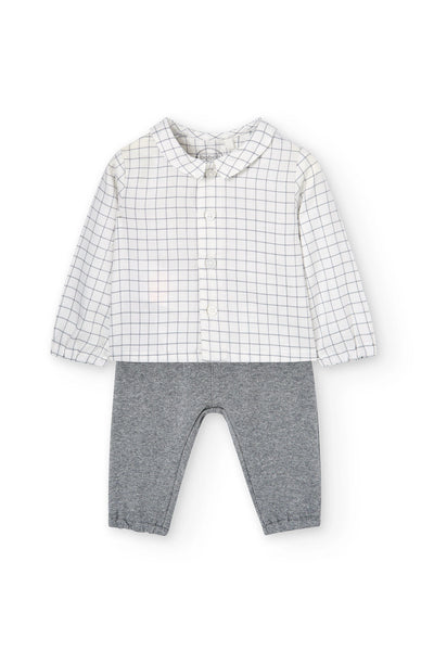 Pack punto combinado de bebé niño, contiene 2 piezas. Pantalón de franela de punto en color gris oscuro, se abrocha con botón. Camisa de cuadros en tejido de viella, se abrocha con botones.