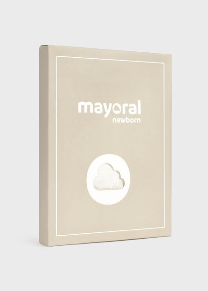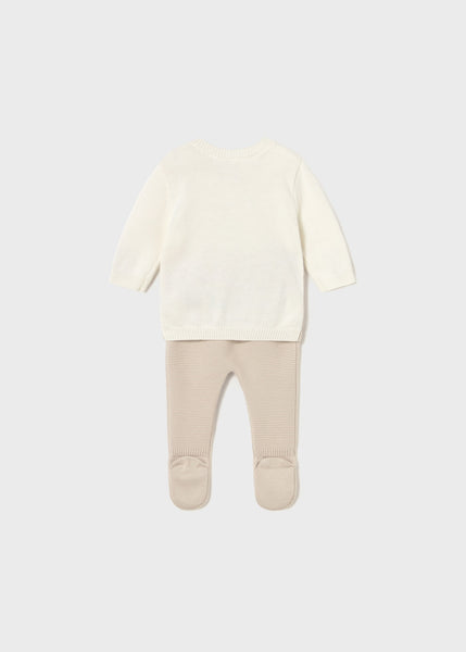 Conjunto tricot de dos piezas para recién nacido compuesto por jersey y polaina a juego.