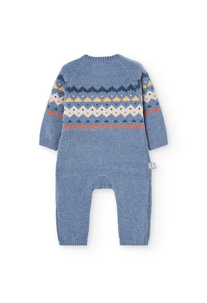 Pelele de punto para bebé en color azul con jacquard en varios colores, perfecto para mantener a tu pequeño abrigado durante los meses fríos. Ofrece un ajuste cómodo que se adapta al crecimiento del bebé. Su diseño en tonos neutros y patrones suaves agrega un toque elegante y moderno, adecuado para cualquier ocasión. Confeccionado en un tejido de punto cálido y acogedor, resulta ideal para el invierno. Incluye prácticos cierres de botones en el hombro y entre las piernas, facilitando el cambio de pañales. Las mangas largas aseguran que tu bebé permanezca cómodo y estiloso en todo momento.