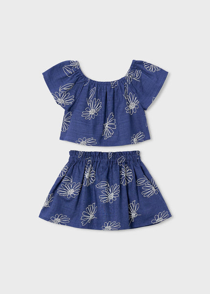 Conjunto Blusa y Falda Azul Lino