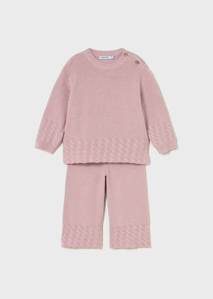 Contiene poliéster reciclado. Conjunto de jersey con pantalón largo a juego para bebé. Tejido de punto tricotosa de tacto suave y agradable.