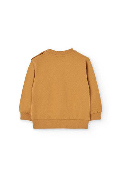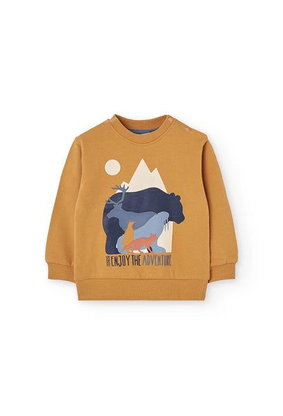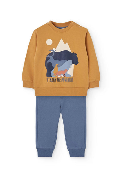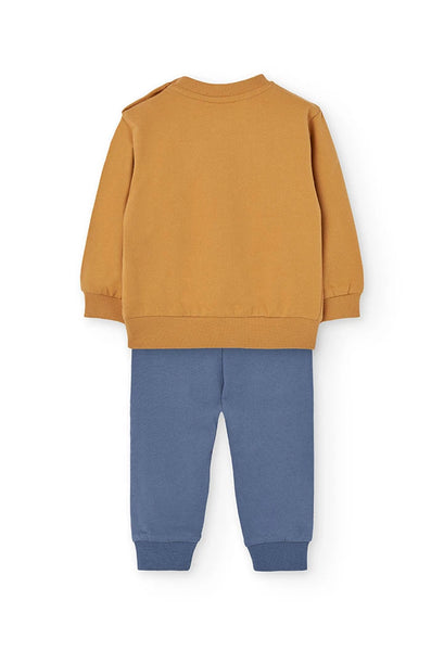 Conjunto de punto en color amarillo, ideal para niños durante la temporada de otoño e invierno. El diseño de paisaje sobre la sudadera añade un toque lúdico y original, mientras que los materiales suaves aseguran la máxima comodidad. Incluye un pantalón que ofrece libertad de movimiento. Perfecto para combinar con botas o zapatillas, creando un look cálido y moderno para las aventuras diarias de los más pequeños.