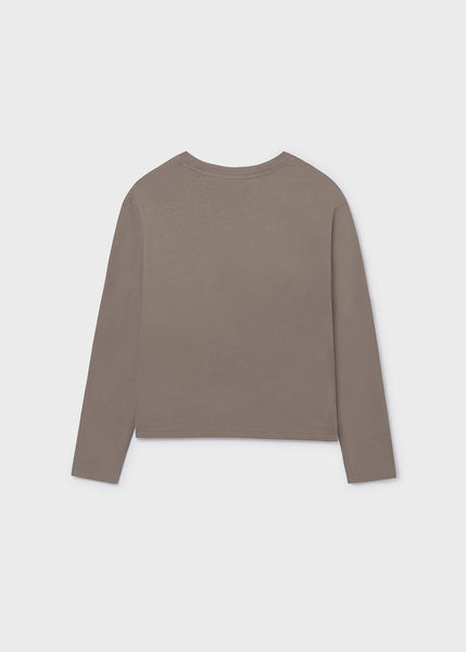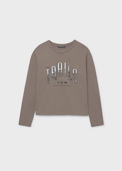 Camiseta de manga larga para chico. Cuello redondo. Elementos de adorno: detalle en relieve (embossed), serigrafía (print). Motivo de letras a modo decorativo.