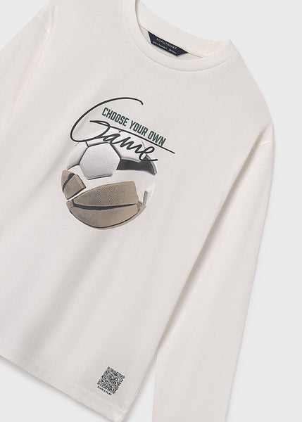Camiseta de manga larga para chico. Cuello redondo. Elementos de adorno: serigrafía (print). Prenda con código QR perteneciente a nuestra colección interactiva PLAY WITH. Al escanear el QR accederás a un videojuego exclusivo de Mayoral.