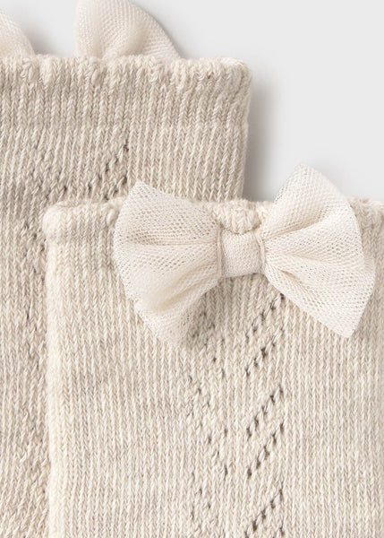 Práctico set de dos pares de calcetines para bebé. Elementos de adorno: moño.