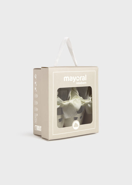 Zapatos de tipo merceditas para recién nacido, de estilo clásico y atemporal para sus estilismos más elegantes. Material exterior efecto piel. Forro interior y plantilla de algodón transpirable. Cierre con velcro ajustable que garantiza una perfecta sujeción del pie. Lazo decorativo.