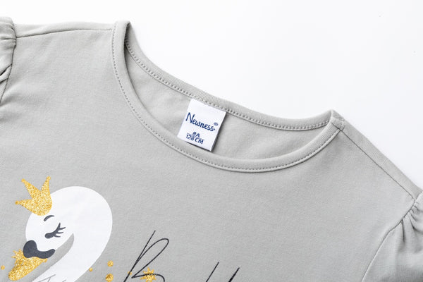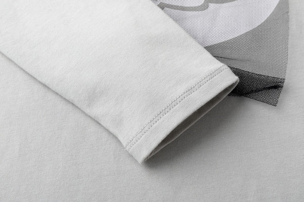 Camiseta cuello redondo, manga larga, con dibujo de Cisne con detalle de tul en la parte delantera de la prenda