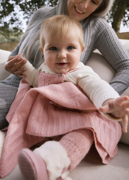 Cobija para recién nacido de diseño envolvente en punto suave que ofrece confort al bebé en sus momentos de descanso. Medidas: 90 cm de largo x 90 cm de ancho.