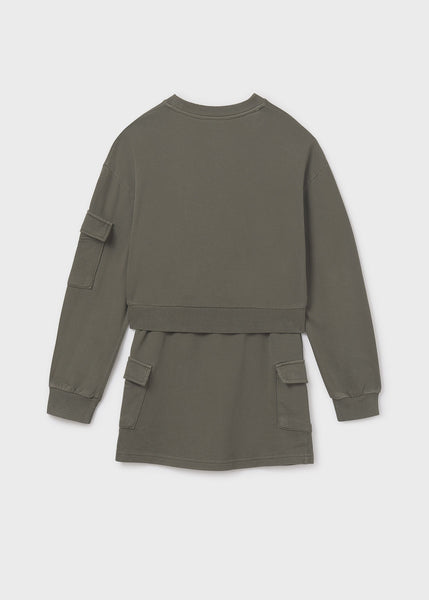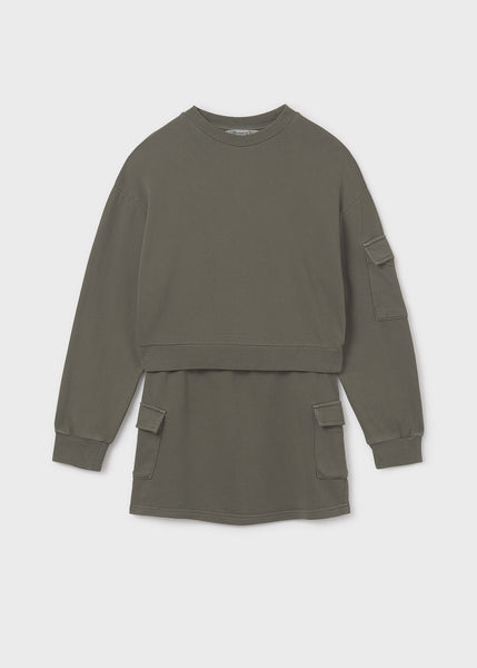Original conjunto para chica.Sudadera de manga larga para chica. Cuello redondo. Bolsillo lateral.Falda para chica. Cinturilla elástica. Bolsillos en los laterales.