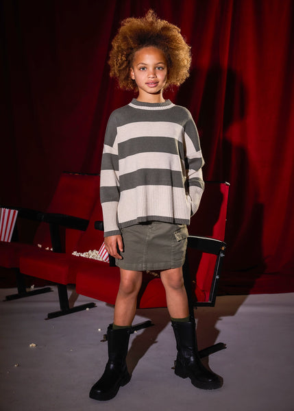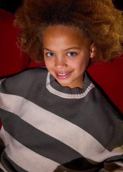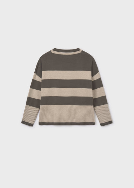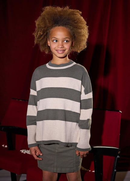 Contiene poliéster reciclado. Jersey de manga larga para chica. Cuello redondo. Bajo, puños y cuello de punto elástico para un mejor ajuste. Motivo de rayas.