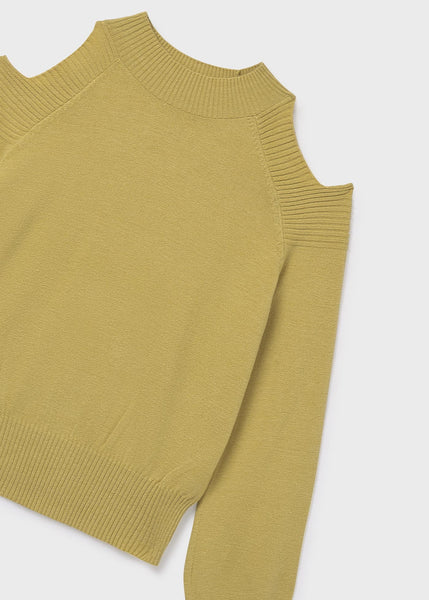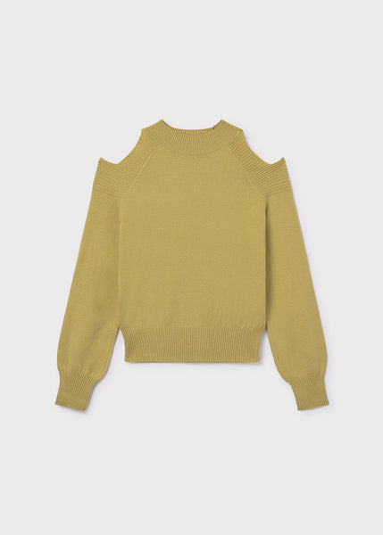 Suéter de manga larga para chica. Confección combinada en distintos tejidos para conseguir un diseño único y especial. Elementos de adorno: aberturas de adorno. Diseño liso.