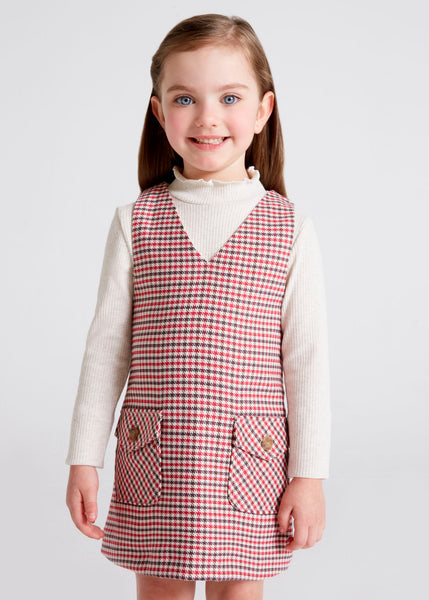 Conjunto de camisa y peto a juego para niña.Diseño con tirantes. Cierre con cremallera trasera invisible.Camiseta de manga larga para niña. Cuello semicisne.